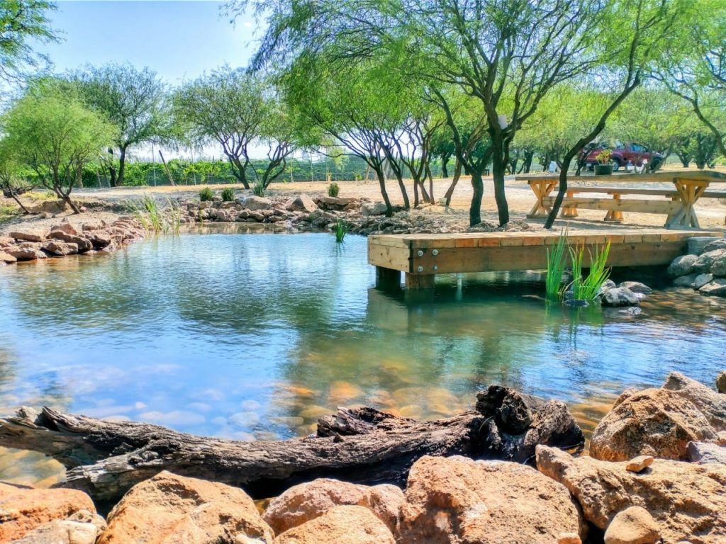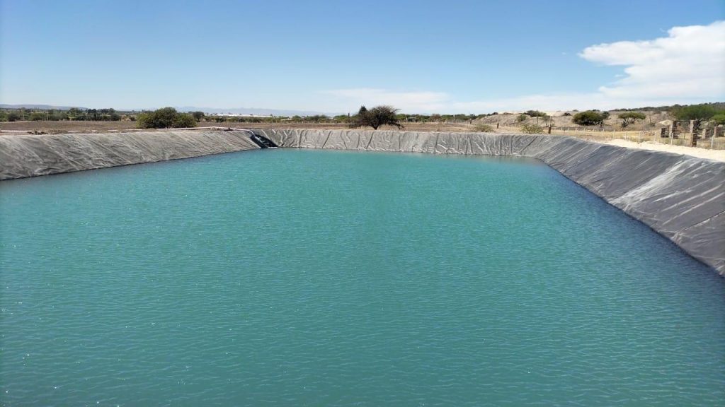 ESTANQUE DE OLLA CON MEDIDAS DE 40 X 20 METROS, CUBIERTO CON GEOMEMBRANA DE 1MM DE ESPESOR.